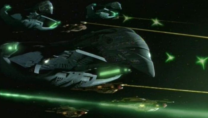 A D'deridex class firing torpedoes.