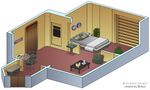 The ship’s living quarters come in various sizes for those with a higher rank above lieutenant commander (most of them are on the ship's edge). Those ranked Ensign have access to smaller standard-size quarters that rarely have a window. They come with a bed, a replicator, a bathroom, and a small living space. Some ensigns and other junior members share rooms too.